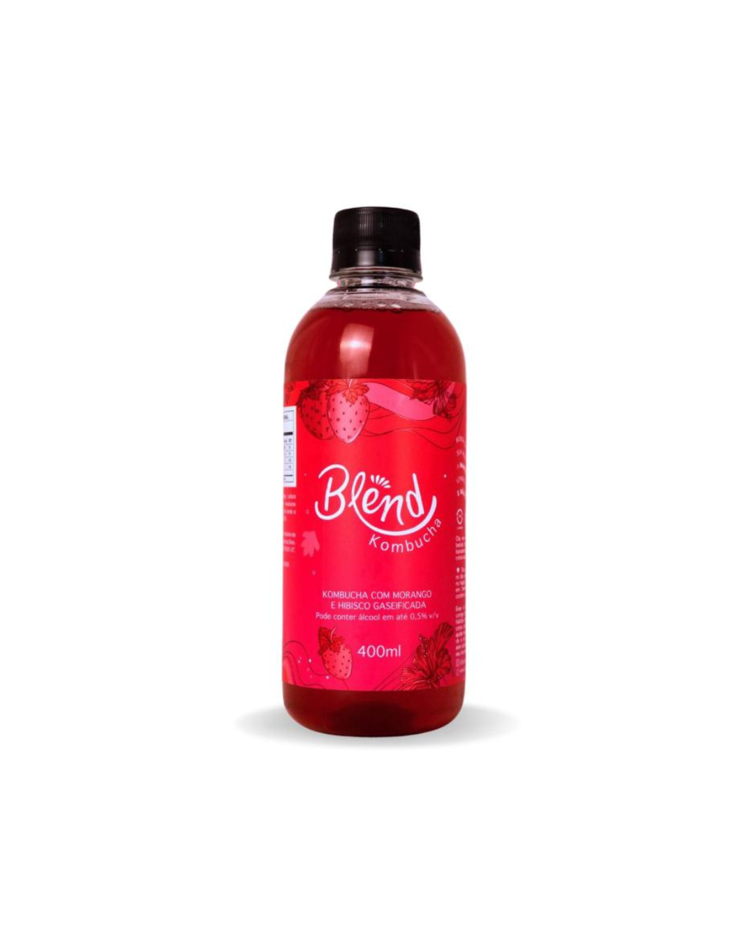 Ingredientes: Água gaseificada, cultura simbiótica de bactérias e leveduras (SCOBY), açúcar, morango, chá verde e hibisco.