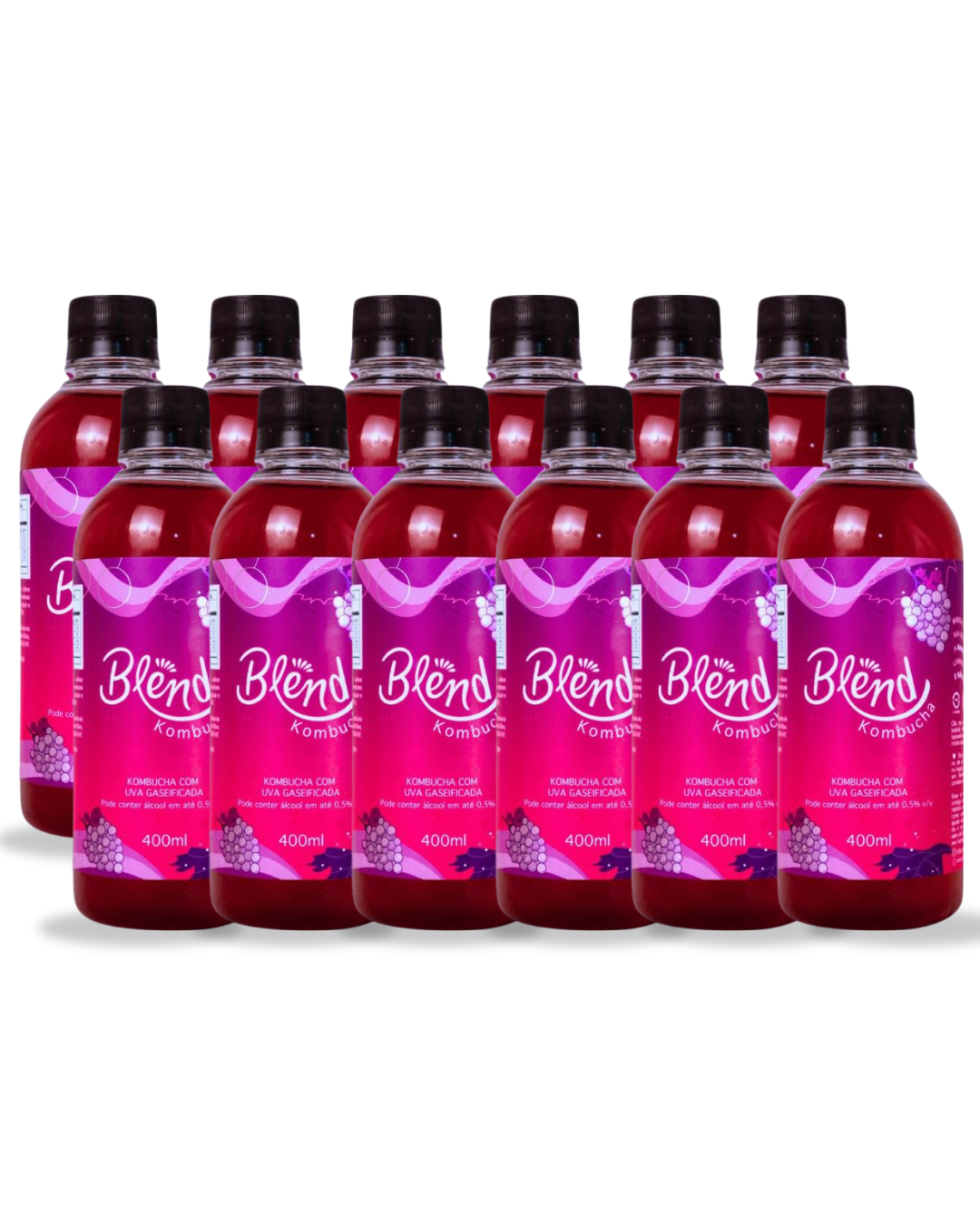 Ingredientes: Água gaseificada, cultura simbiótica de bactérias e leveduras (SCOBY), suco integral de uva, açúcar e chá verde.